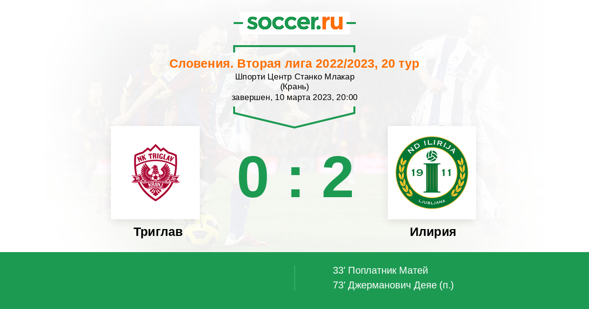 Протокол матча Триглав против Илирия