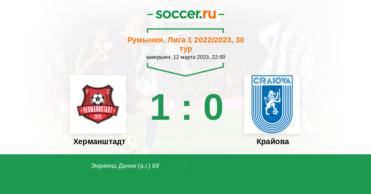 Протокол матча Херманштадт против Крайова