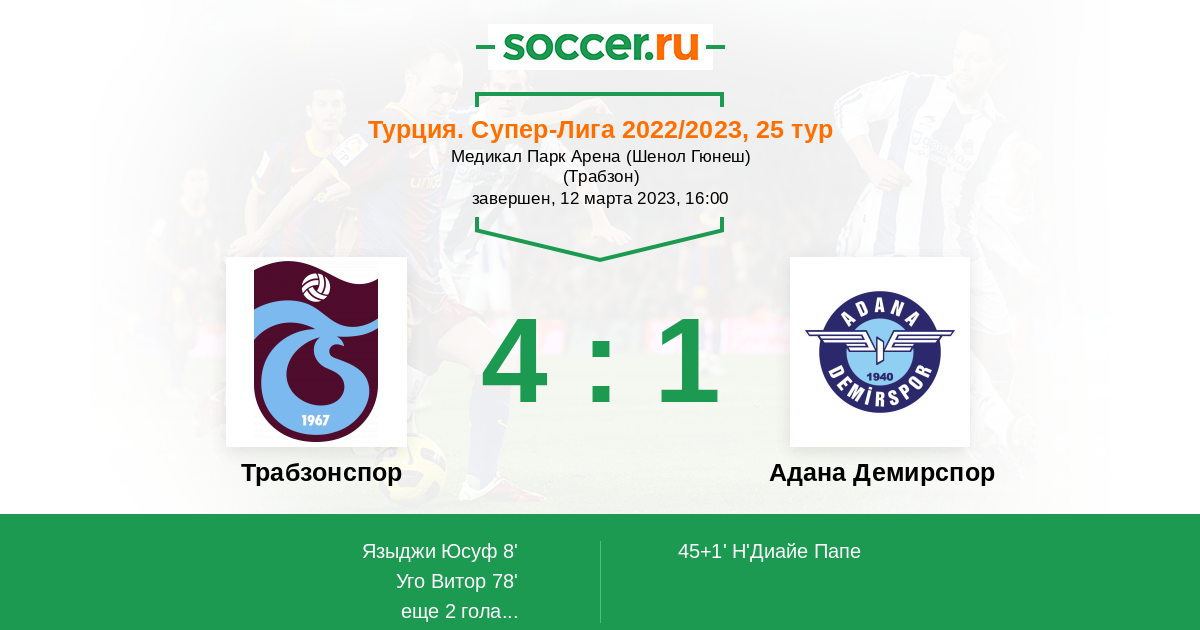 Протокол матча Трабзонспор против Адана Демирспор