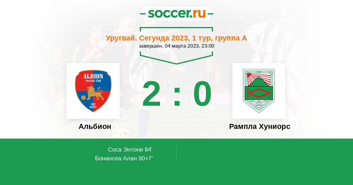 Протокол матча Альбион против Рампла Хуниорс