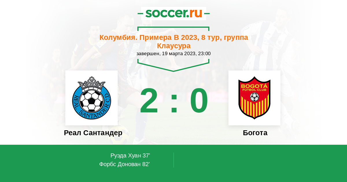 Протокол матча Реал Сантандер против Богота
