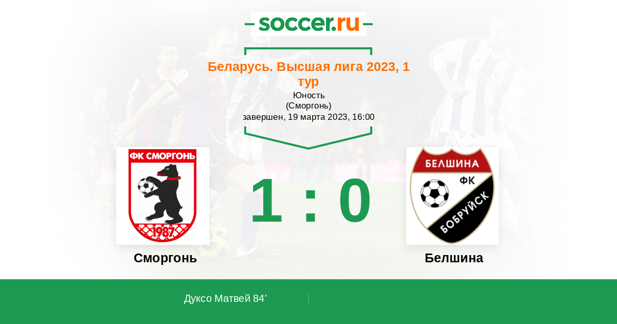 Протокол матча Сморгонь против Белшина