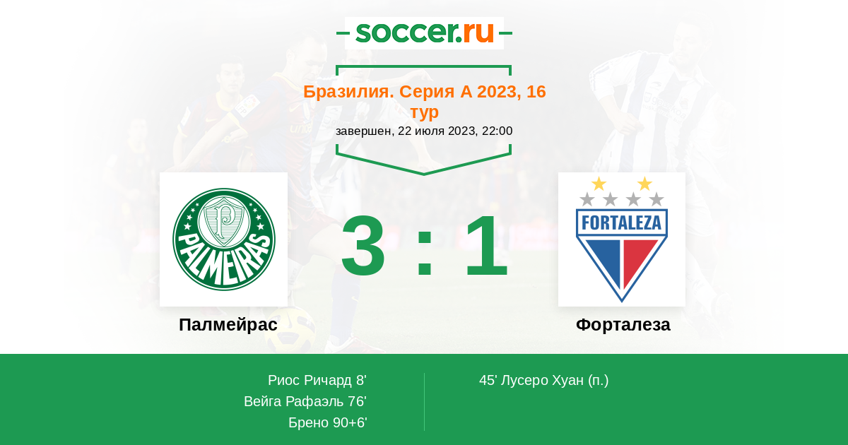 Протокол матча Палмейрас против Форталеза