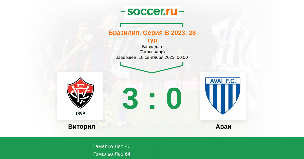 Протокол матча Витория против Аваи