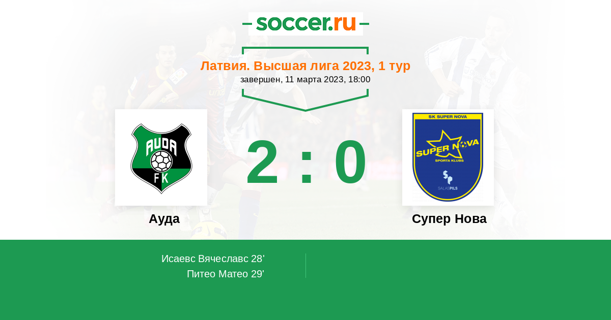 Протокол матча Ауда против Супер Нова