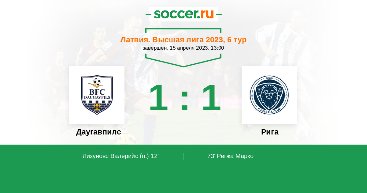 Протокол матча Даугавпилс против Рига