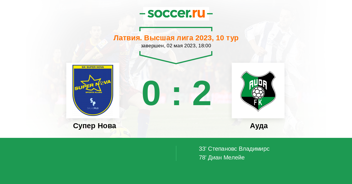 Протокол матча Супер Нова против Ауда