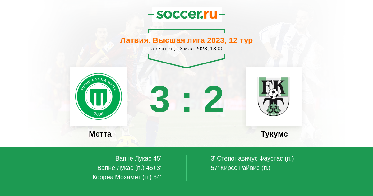 Протокол матча Метта против Тукумс