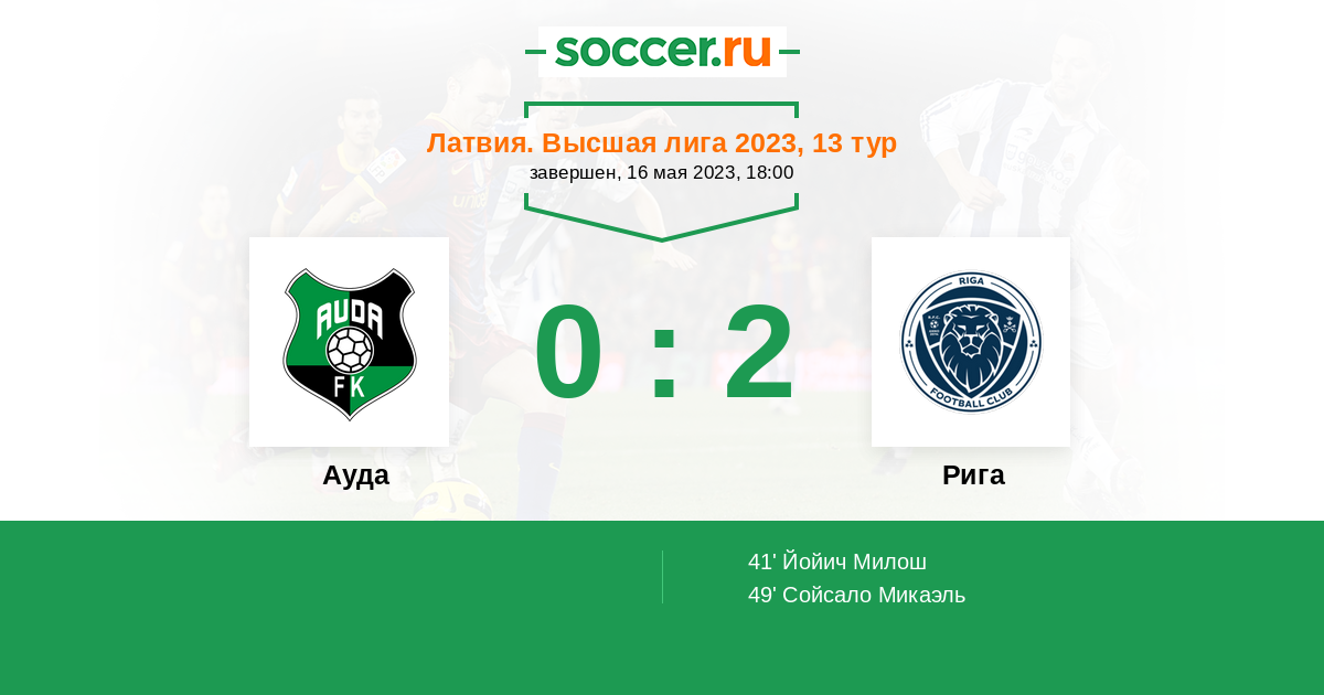 Протокол матча Ауда против Рига