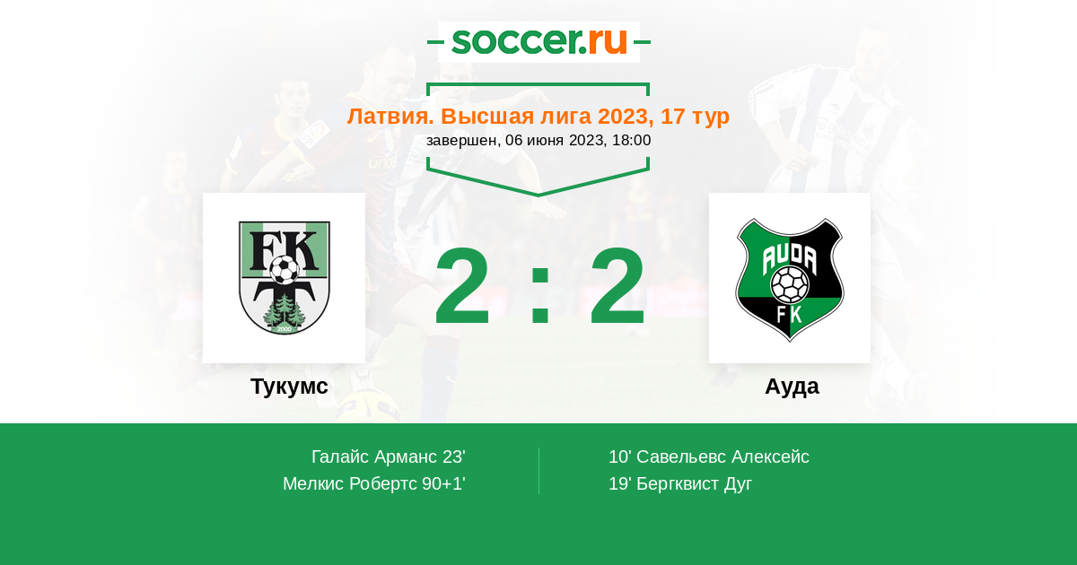23' (1:2) Галайс Арманс (9) (Сармис Стуглис Ингарс (28))
