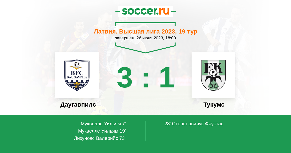 Протокол матча Даугавпилс против Тукумс