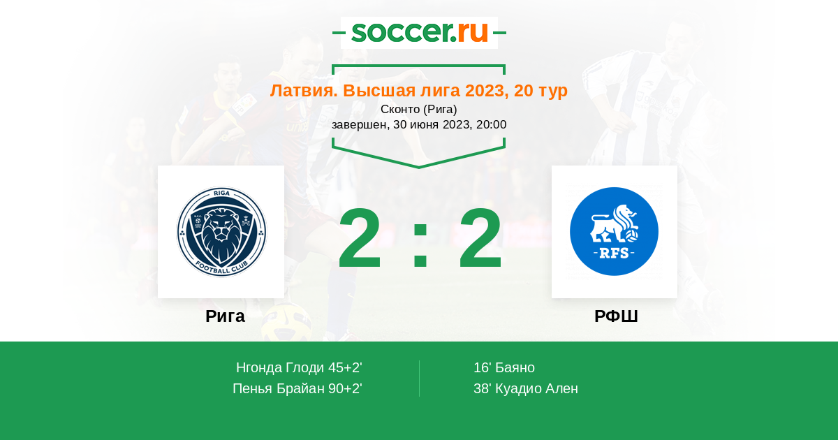 Протокол матча Рига против РФШ