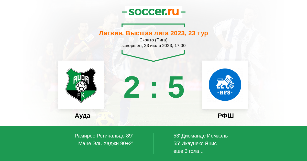 Протокол матча Ауда против РФШ
