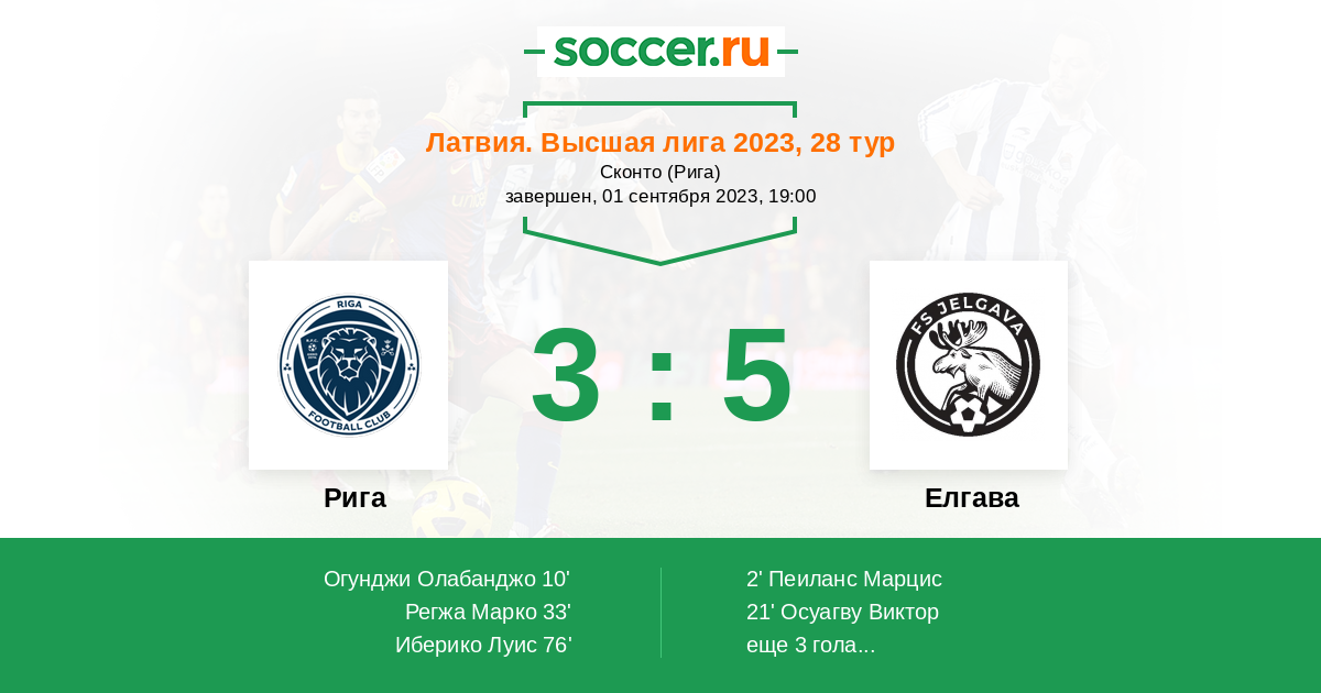 Протокол матча Рига против Елгава
