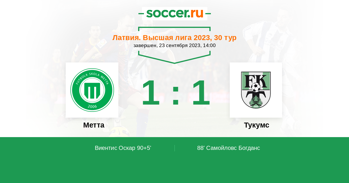 Протокол матча Метта против Тукумс