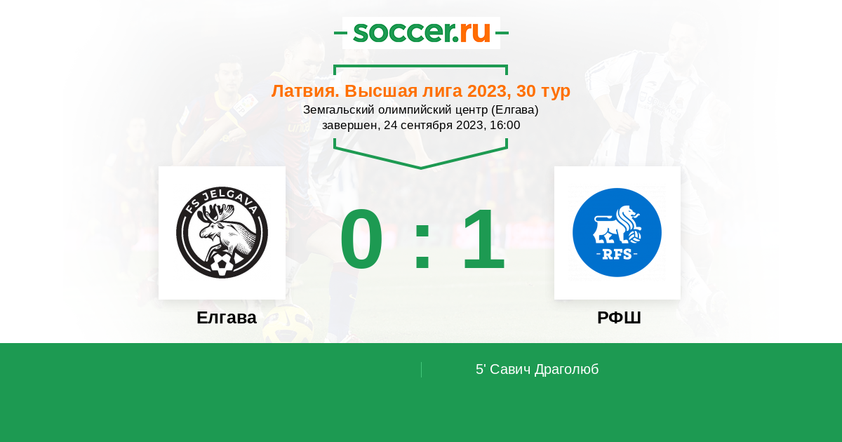 Протокол матча Елгава против РФШ