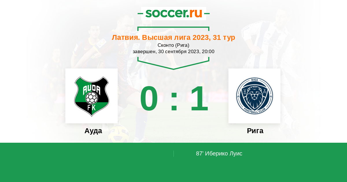Протокол матча Ауда против Рига