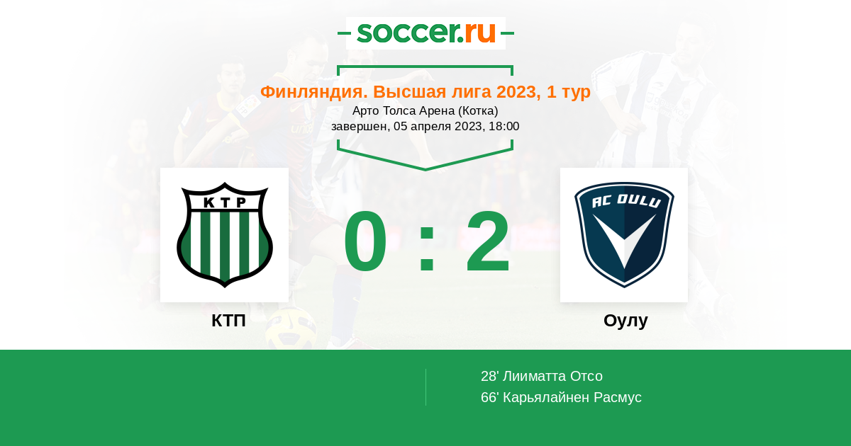 Протокол матча КТП против Оулу
