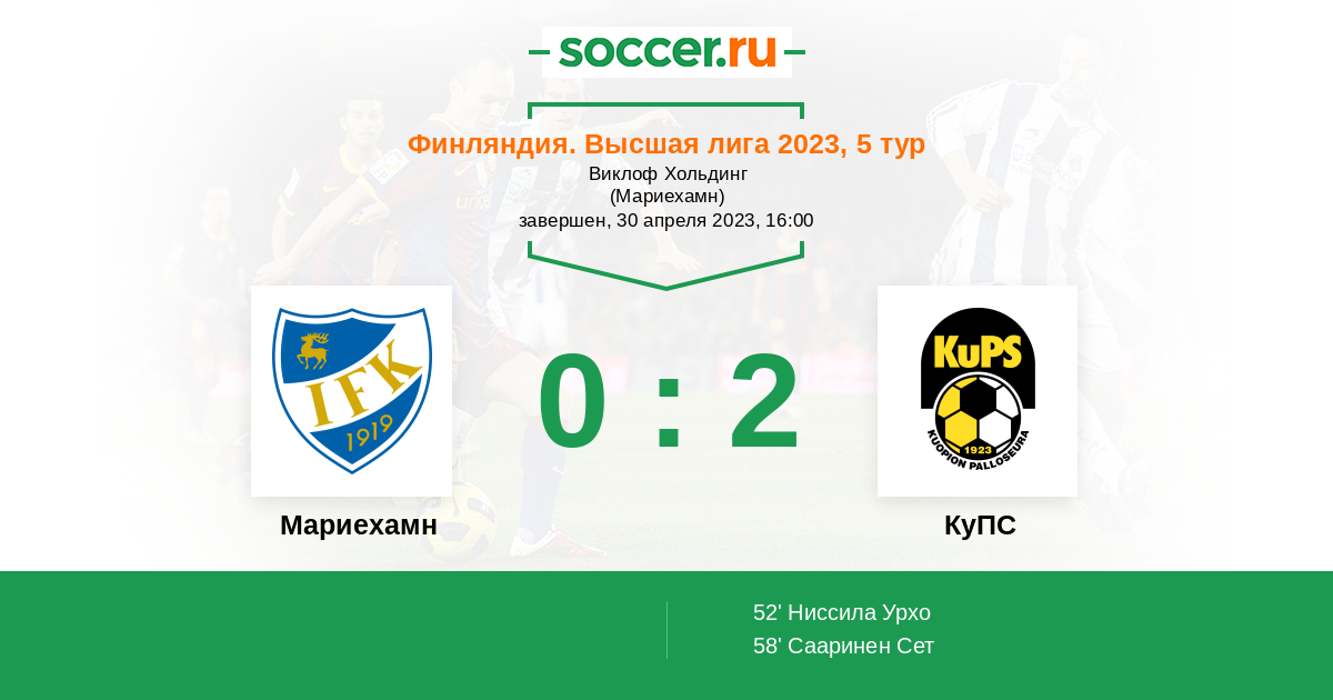 Протокол матча Мариехамн против КуПС