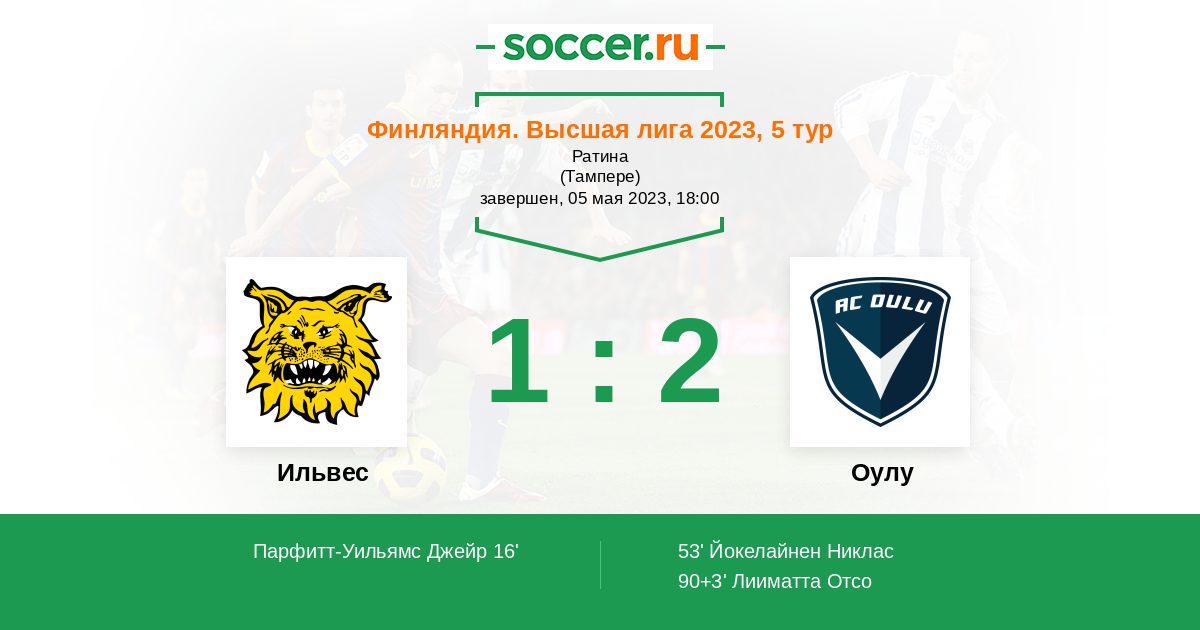 Протокол матча Ильвес против Оулу