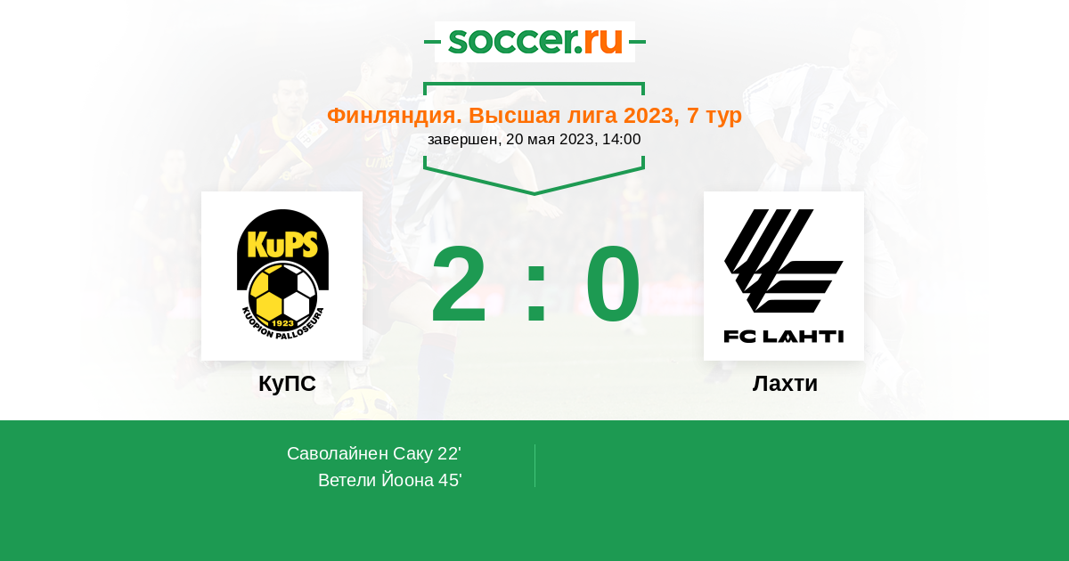Протокол матча КуПС против Лахти