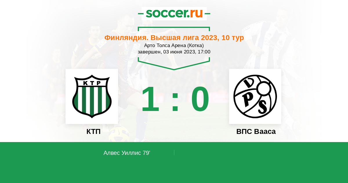 Протокол матча КТП против ВПС Вааса