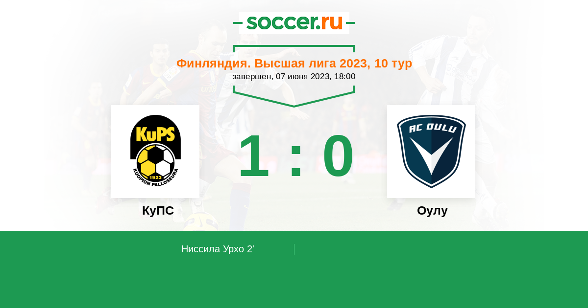 2' (1:0) Ниссила Урхо (10) (Хейнонен Артту (17))