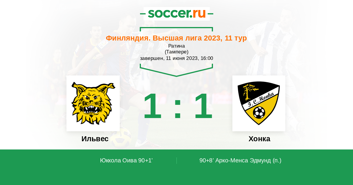 Протокол матча Ильвес против Хонка
