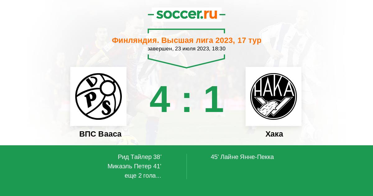 45' (2:1) Лайне Янне-Пекка (17) (Махута Райан (18))