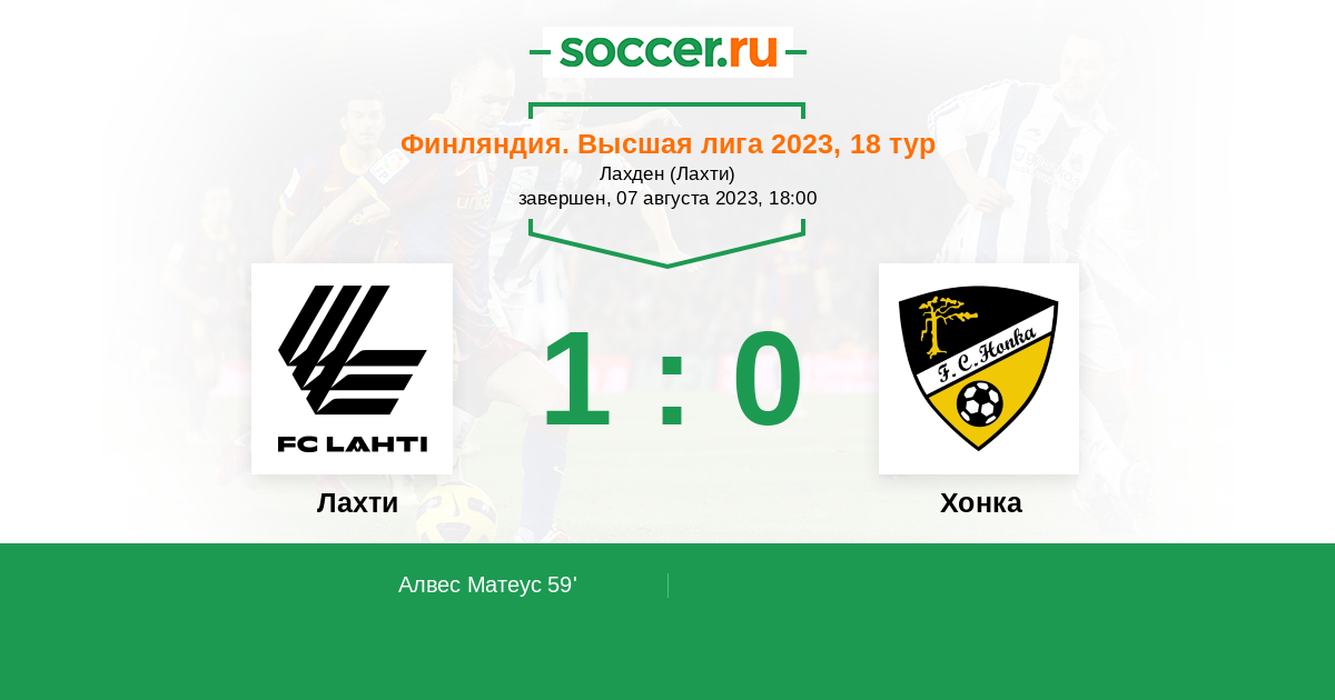 Протокол матча Лахти против Хонка