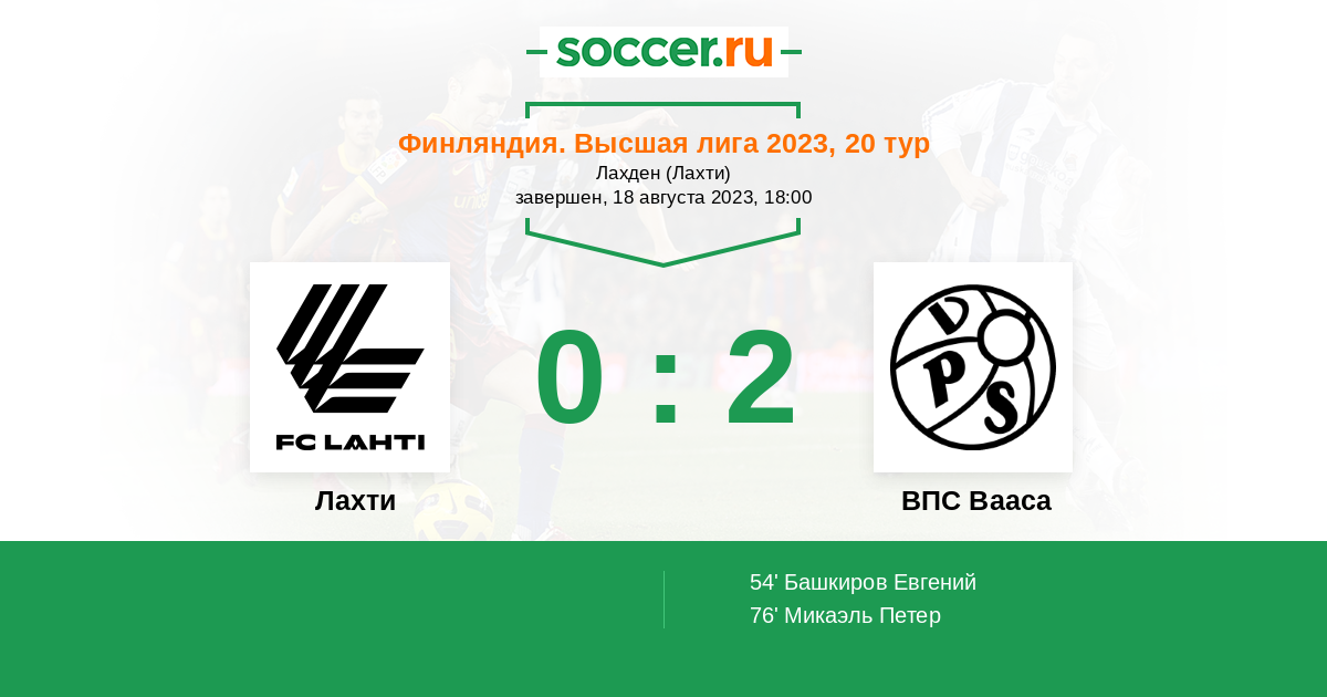 Протокол матча Лахти против ВПС Вааса