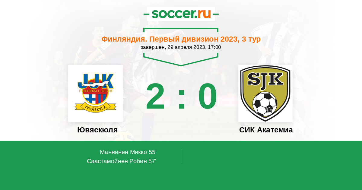 57' (2:0) Саастамойнен Робин (15) (Пихлайя Оскар (4))