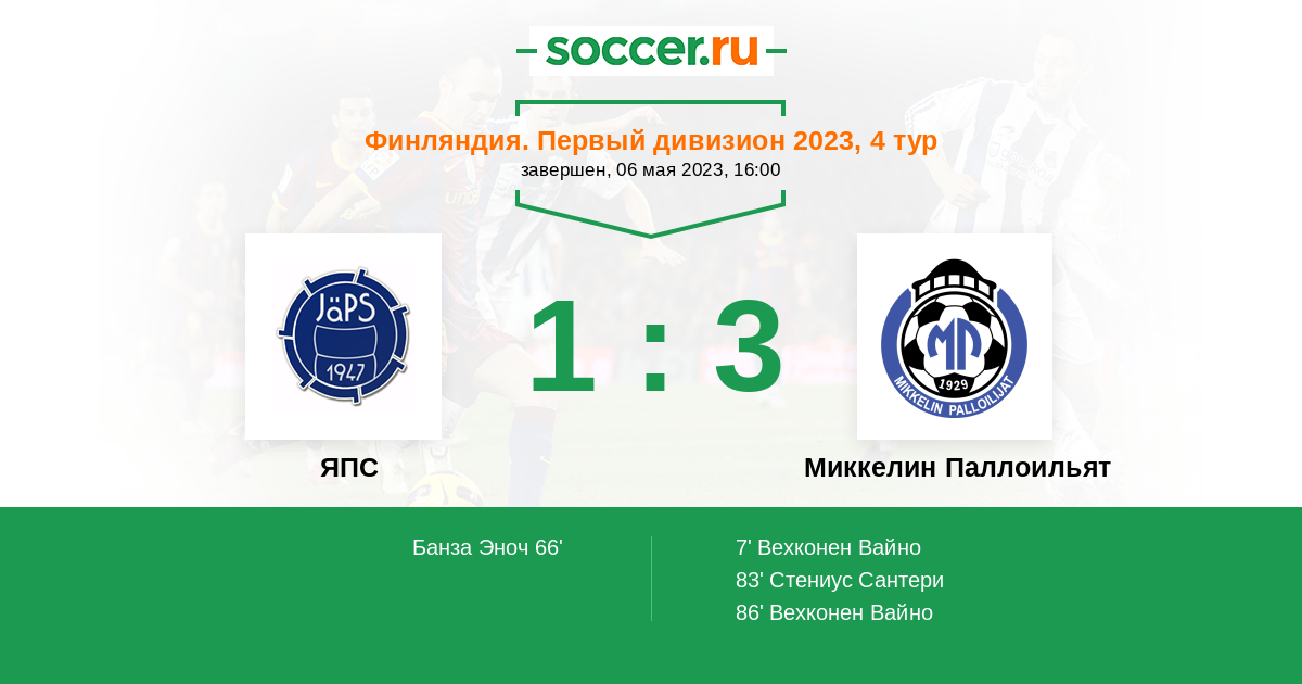 86' (1:3) Вехконен Вайно (3)
