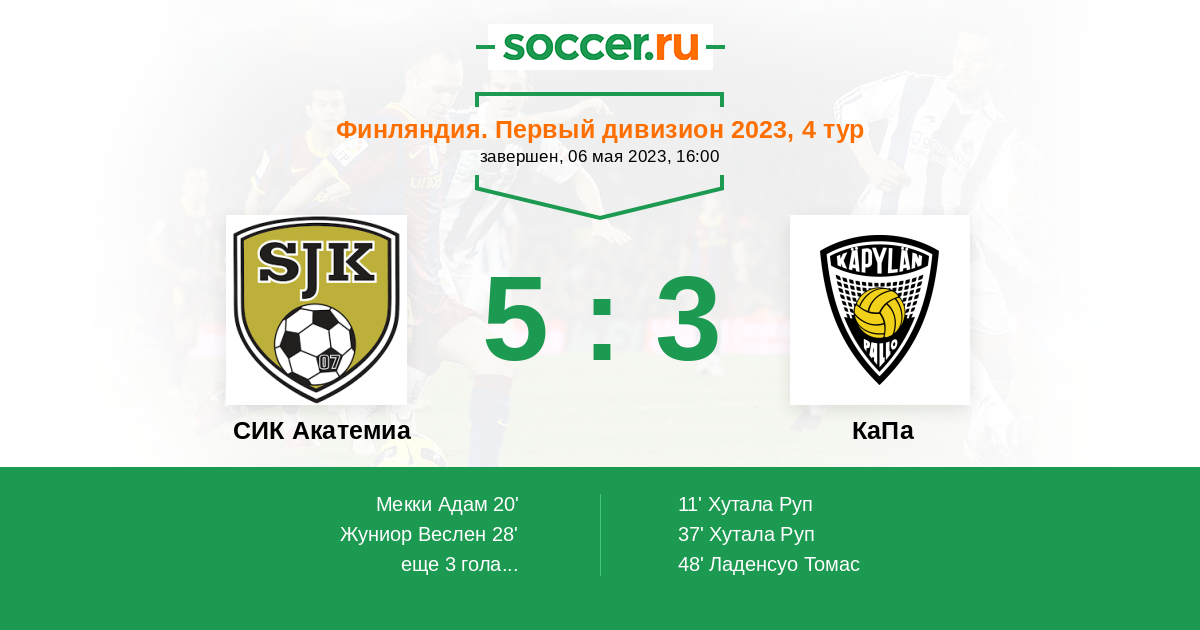 Протокол матча СИК Акатемиа против КаПа