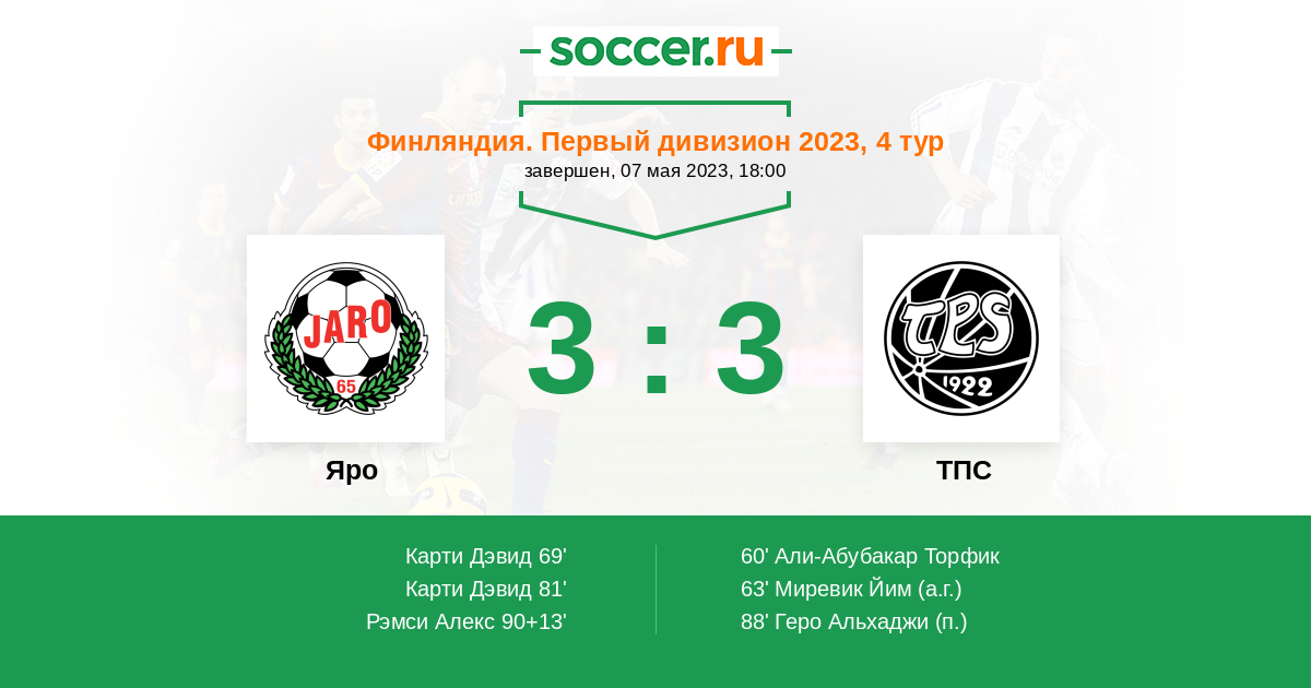 Протокол матча Яро против ТПС