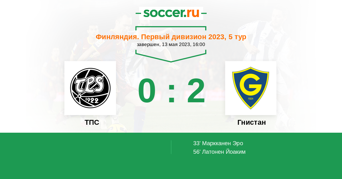 Протокол матча ТПС против Гнистан