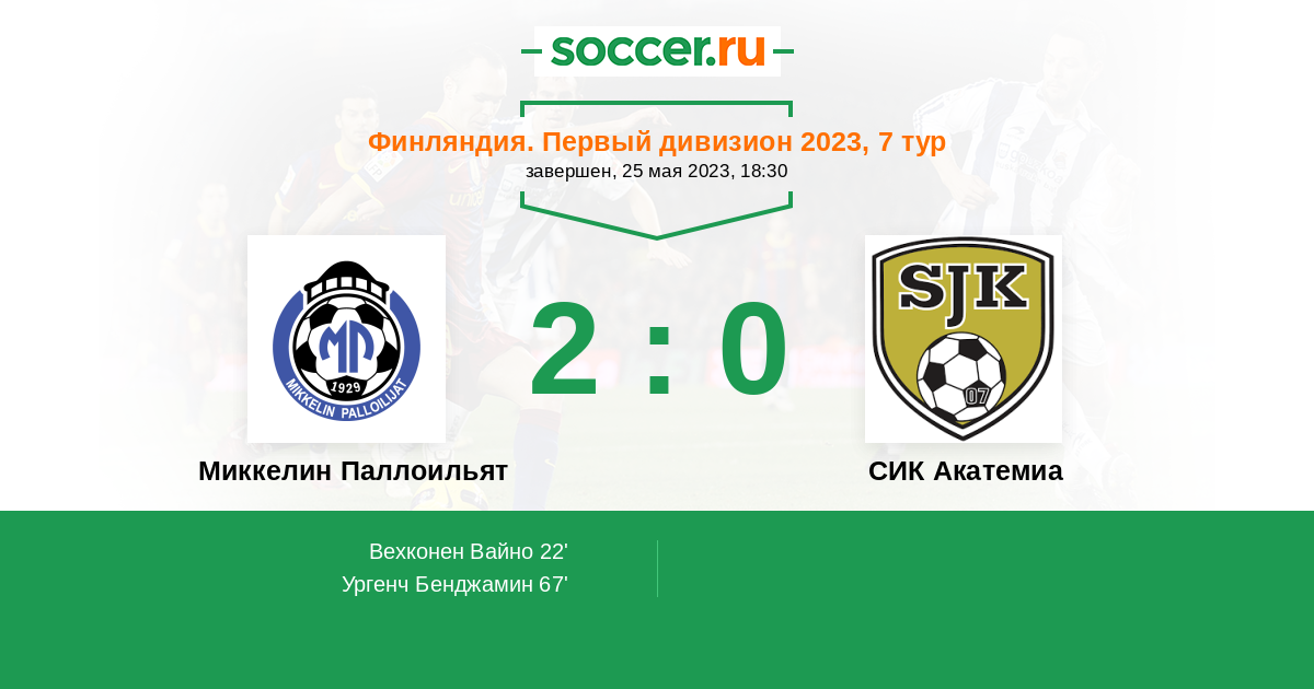 Протокол матча Миккелин Паллоильят против СИК Акатемиа