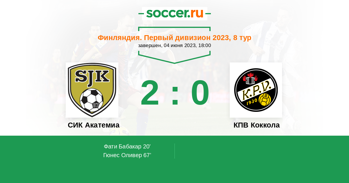 Протокол матча СИК Акатемиа против КПВ Коккола