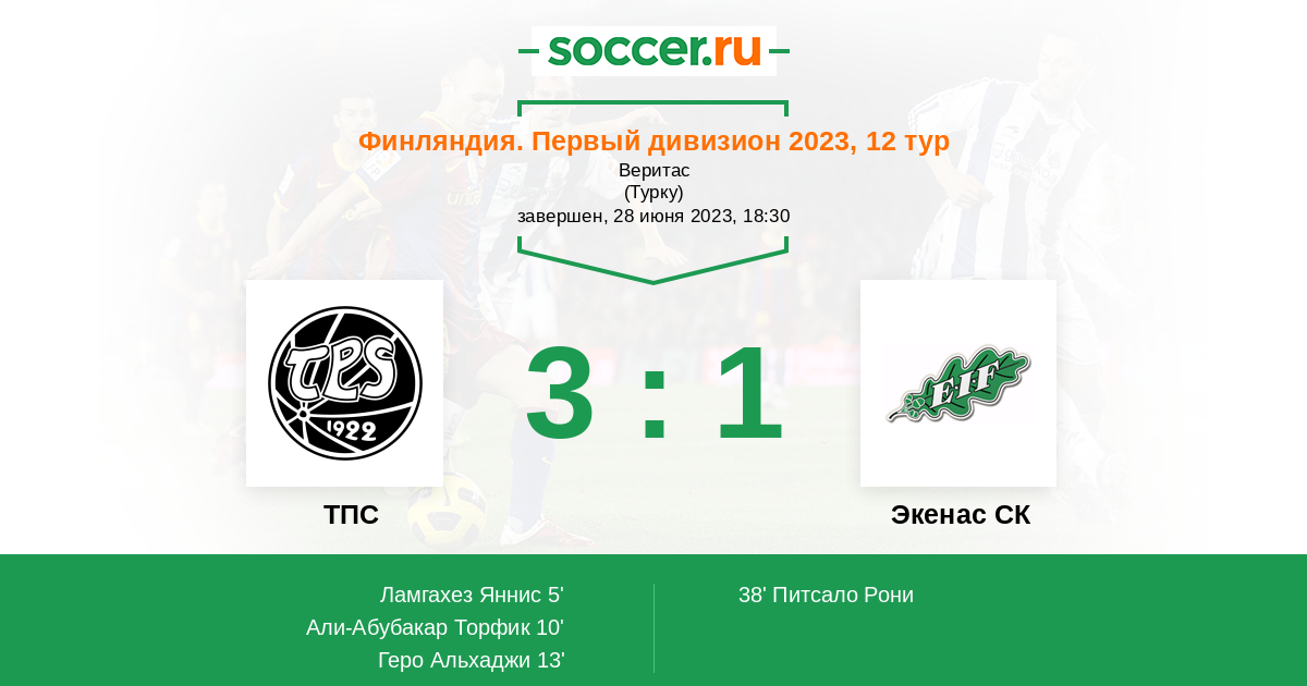 Протокол матча ТПС против Экенас СК