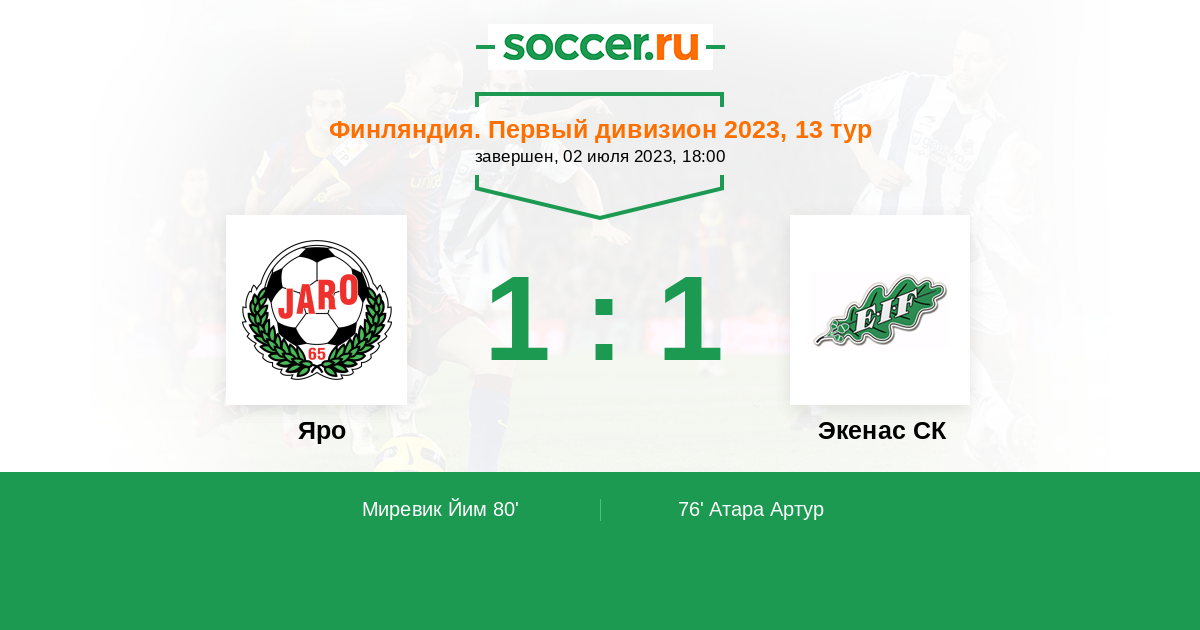 Протокол матча Яро против Экенас СК