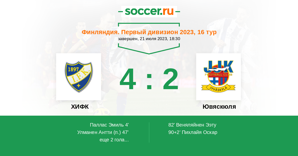 Протокол матча ХИФК против Ювяскюля