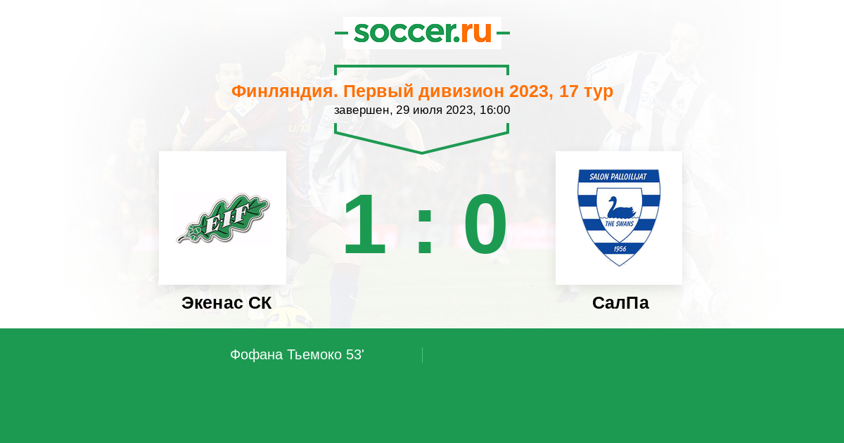 Протокол матча Экенас СК против СалПа