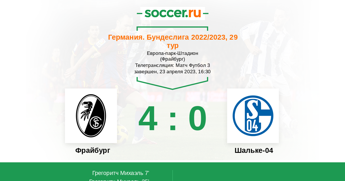 Протокол матча Фрайбург против Шальке-04