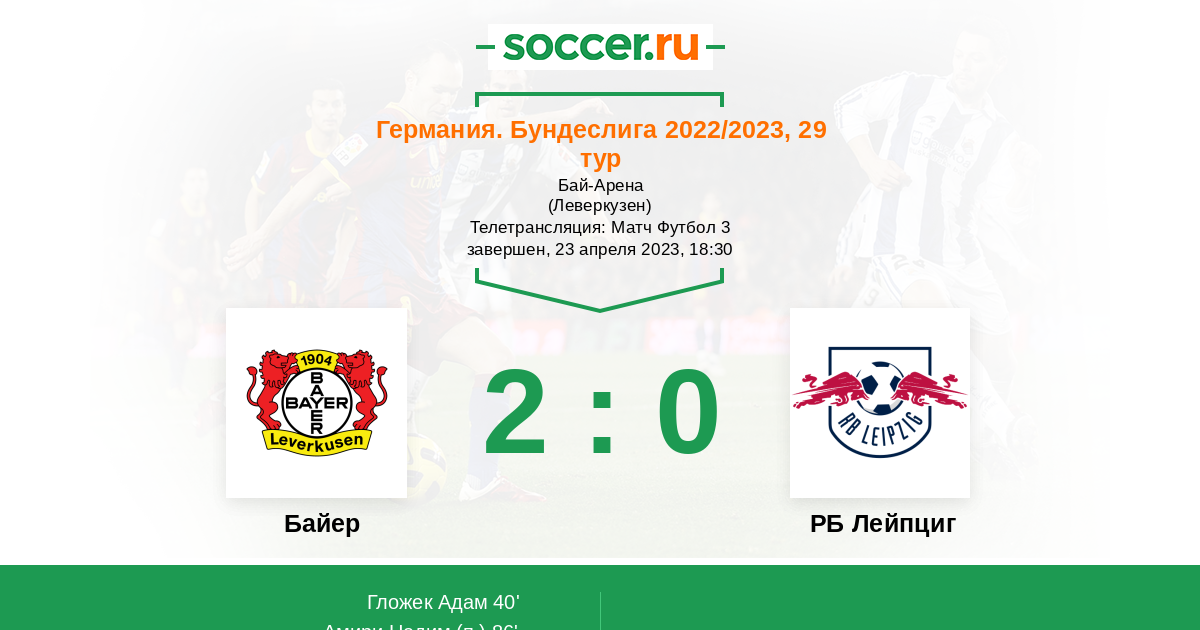 Протокол матча Байер против РБ Лейпциг