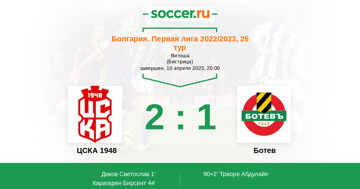 Протокол матча ЦСКА 1948 против Ботев