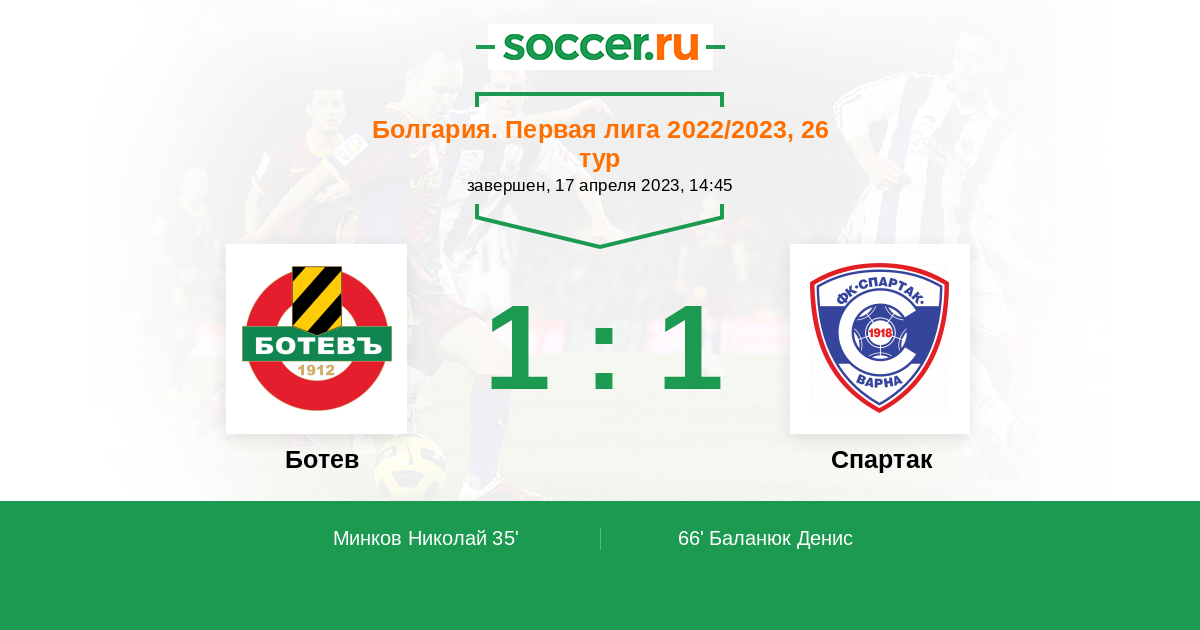 Протокол матча Ботев против Спартак