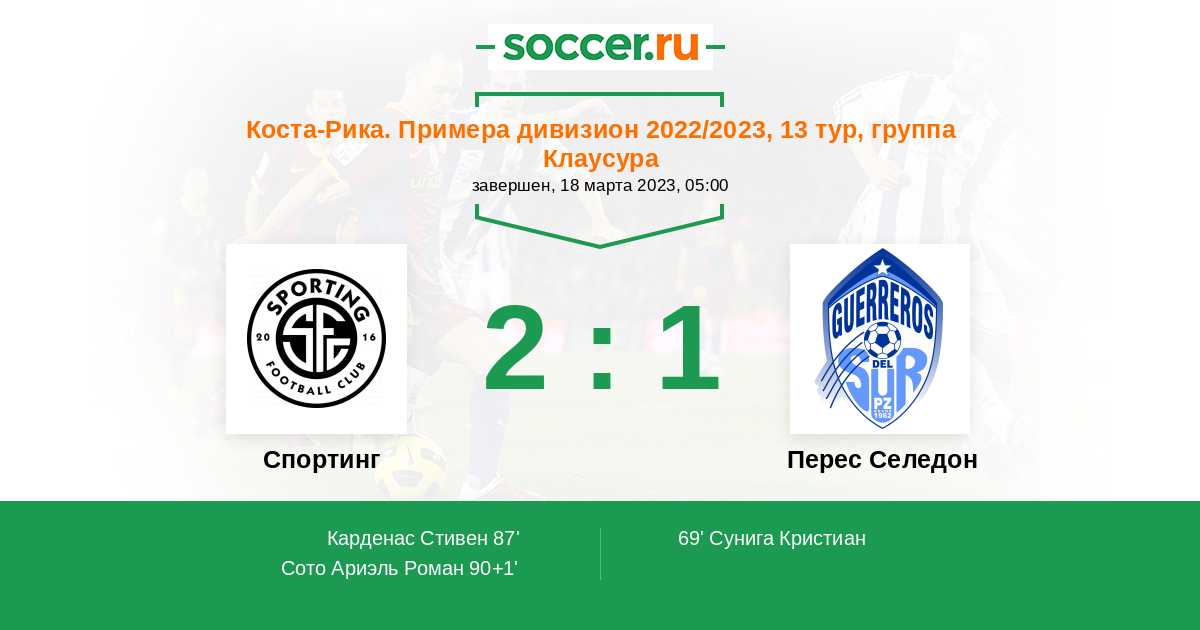 Протокол матча Спортинг Сан-Хосе против Зеледон