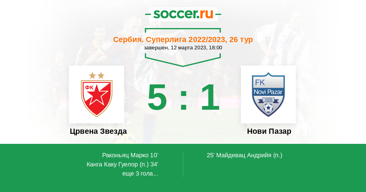 Протокол матча Црвена Звезда против Нови Пазар