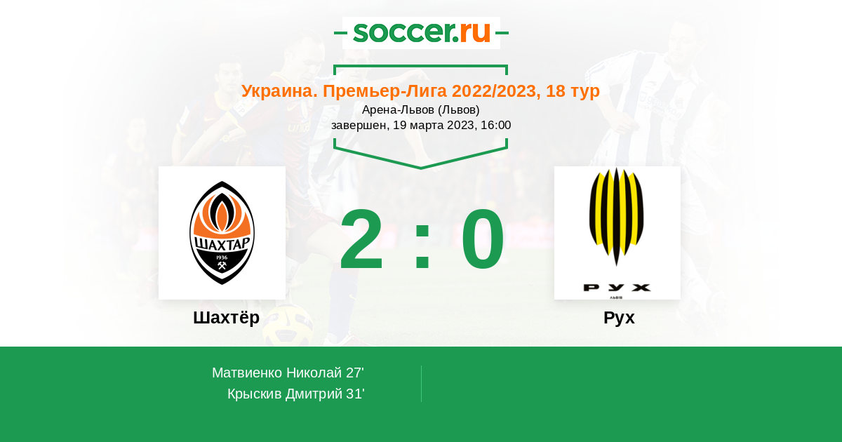 Протокол матча Шахтёр против Рух