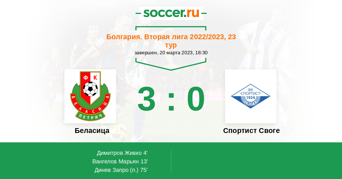 Протокол матча Беласица против Спортист Своге